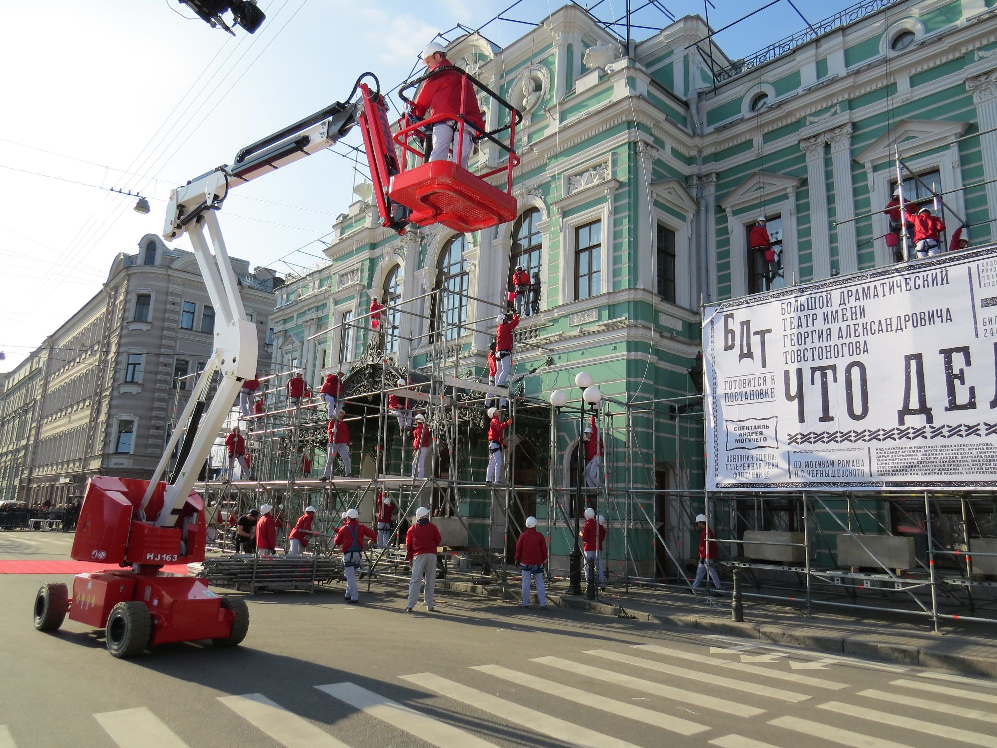 Коленчатый самоходный подъемник HA 15 IP, выступил в роли передвижной вышки во время шоу открытия БДТ им. Товстоногова. С помощью нашего аккумуляторного подъемника режиссер шоу и оператор смогли эффектно появиться в кадре. Подъемник окрашен в красный цвет (фирменный цвет), который идеально подошел для шоу.
