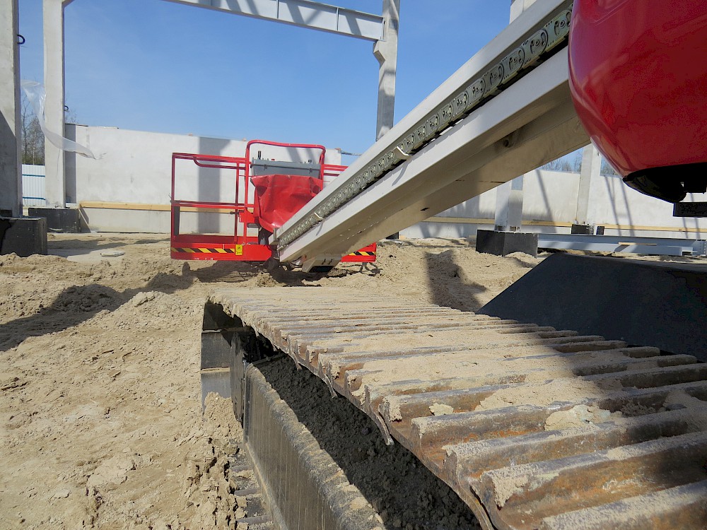 В данном случае телескопический гусеничный подъемник использовался для монтажа металлоконструкций на высоте от 8 -16 метров при возведении торгового центра в Санкт- Петербурге.