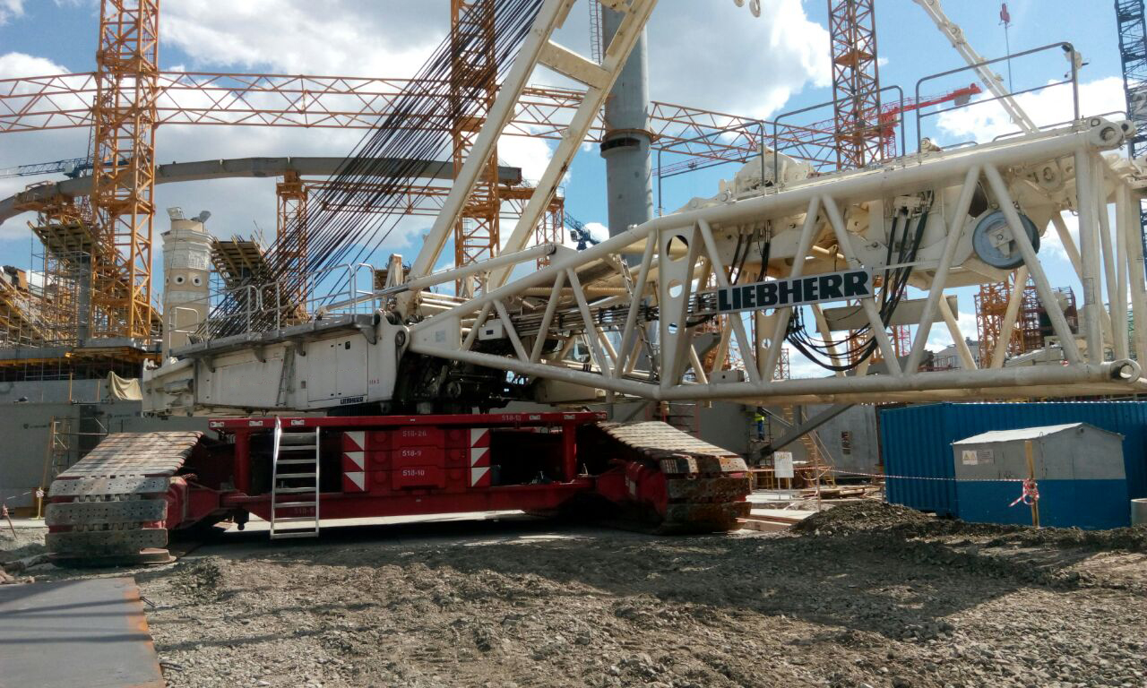 Реконструкции Центрального стадиона в Екатеринбурге осуществляется краном Liebher LR1750.