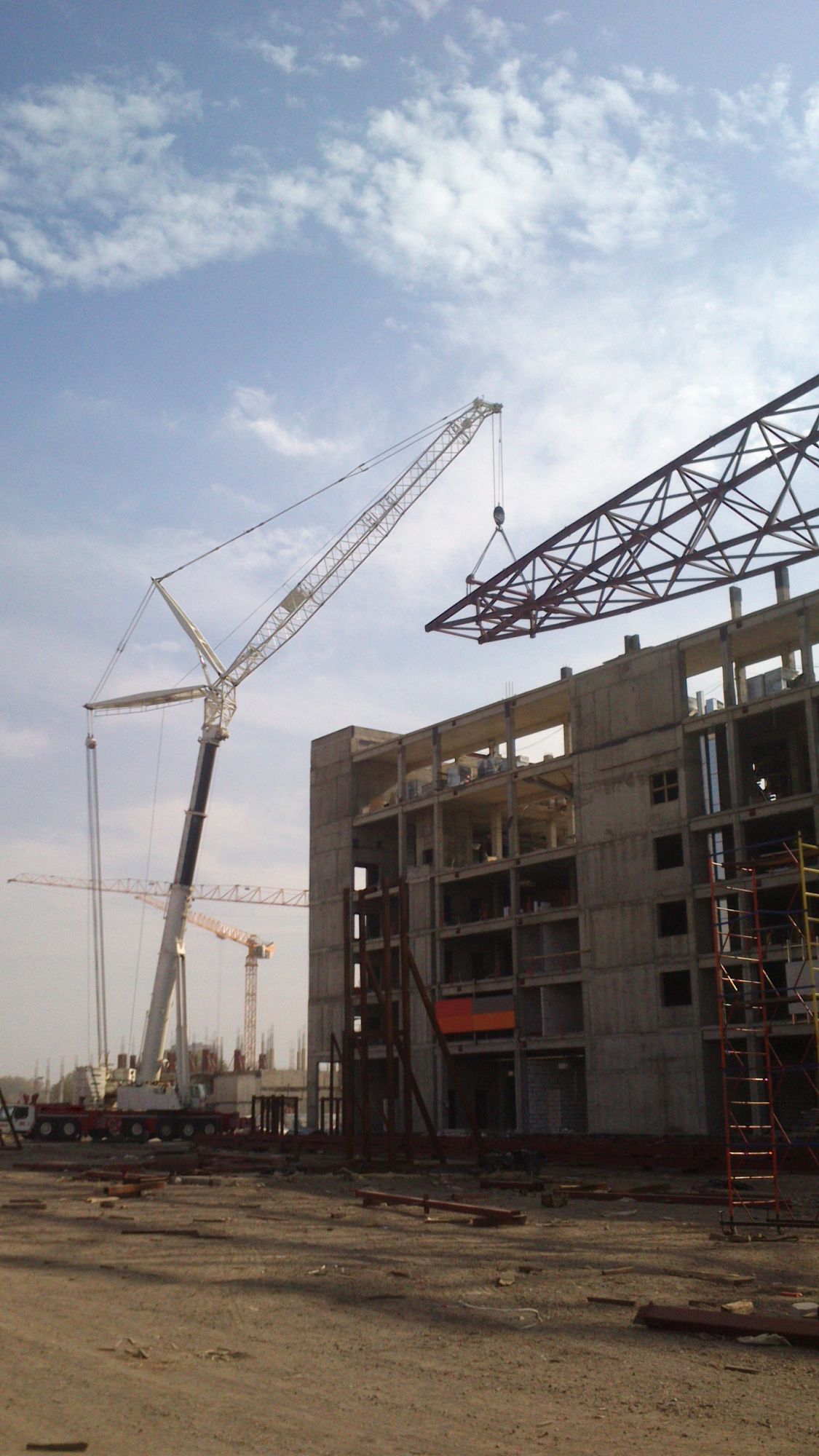 На территории бывшего автозавода "ЗИЛ" началась стройка ледогово дворца и других сооружений. Наш кран Liebherr LTM1400-7.1 участвует в сборке и монтаже ферм. Всего будет установлено 11-ть ферм, которые будут весить по 60 тонн и длиной по 85 метров каждая.
